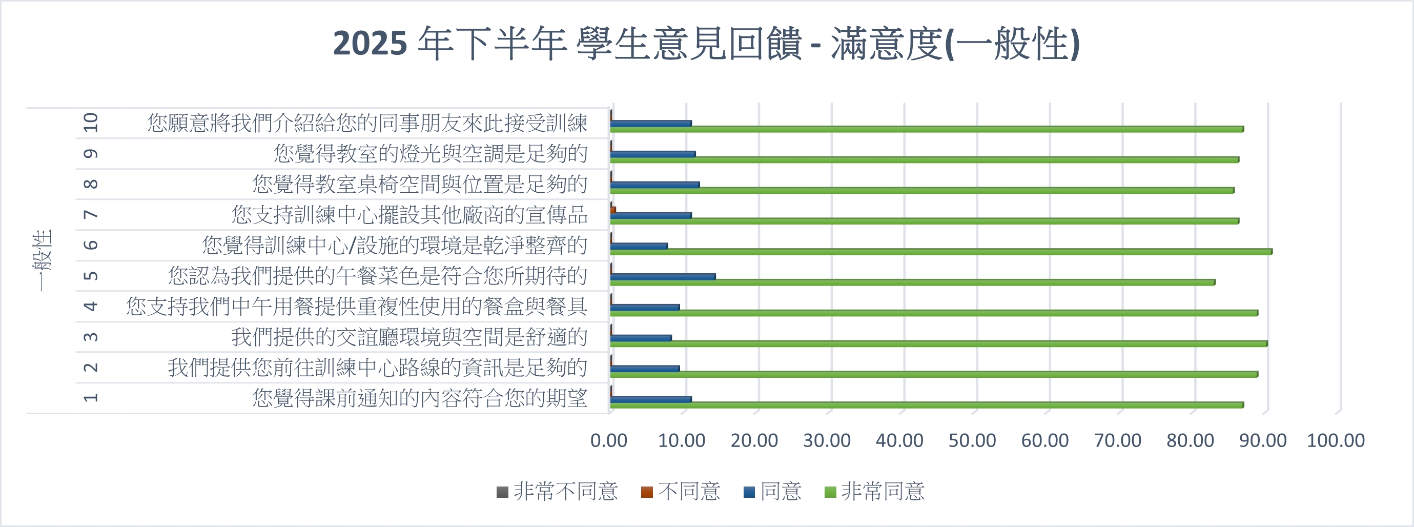 環境舒適滿意度: 交通便利滿意度: 課程內容滿意度: